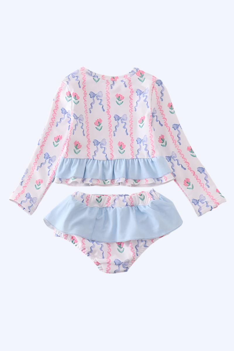 BLUE FLORAL BOW RASHGUARD 2PC SWIMSUIT UPF50+